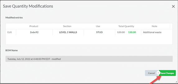 - (Optional) Add a note explaining the update. Notes appear only in the BOM trace and are not included in exported files.