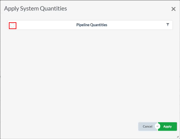 - If you’ve set up any section or system quantities, they will appear here. Mark the checkbox and then clicking Apply.