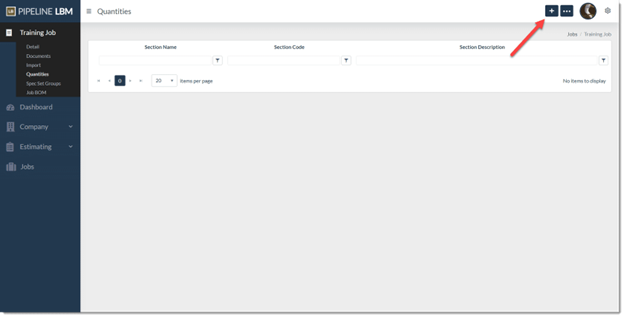 Manually Add Quantities to a Job Section